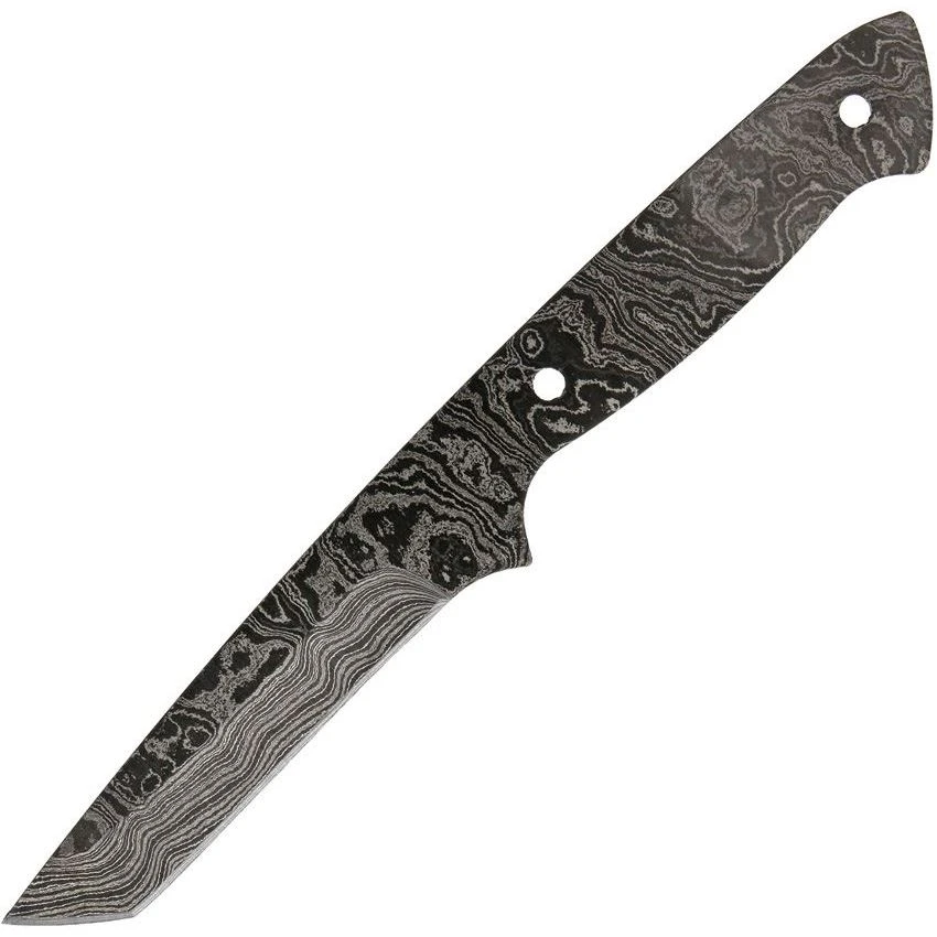 Model – ADS087. Damascus Knife Blade. Damascus Knife Blades. 6.88 inch overall. 3 inch blade. Full tang. Lanyard hole. One piece Damascus steel construction. Bulk packed.