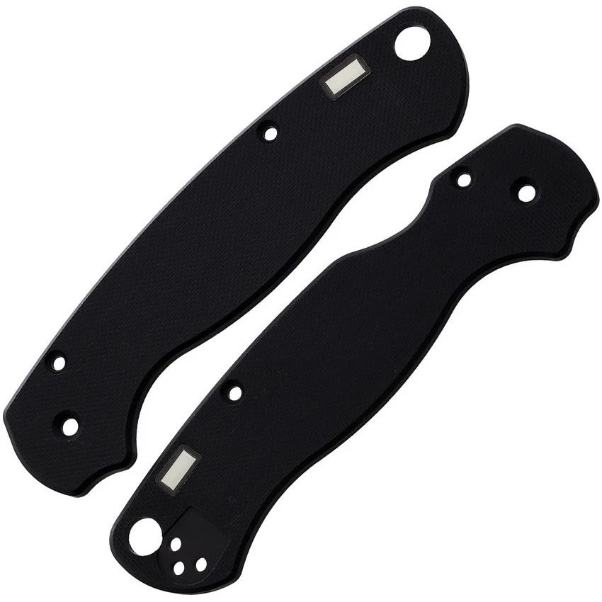 Model/Part Number – GLRKSP2ZG. Glow Rhino Spyderco Para2 Scales Black. Plain Black G10 construction with two XL Tritium lamps. CNC machined. Not compatible with Lightweight model. Bulk packed. Made in China.